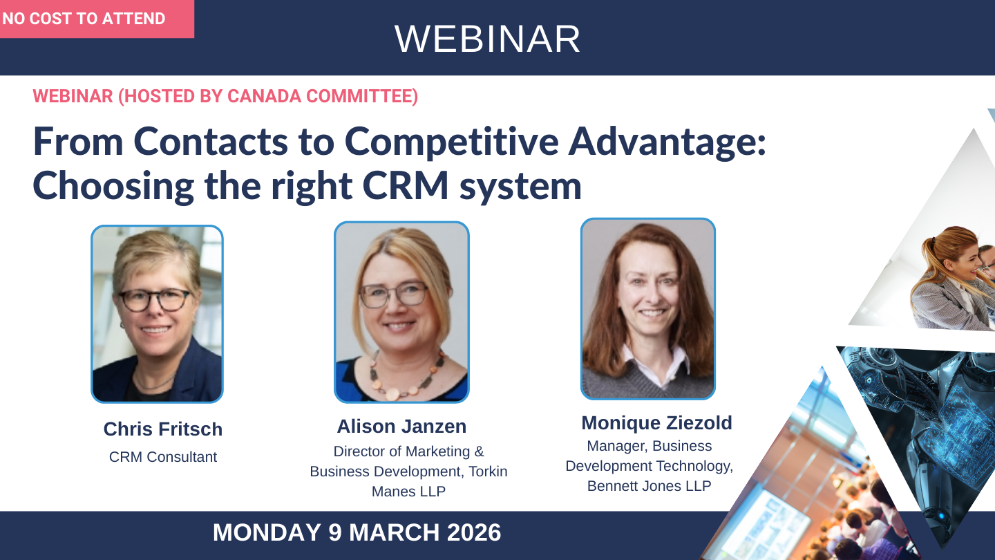 This session is designed for leaders, BD and marketing professionals, and operations teams involved in client development, relationship management, and firm-wide technology initiatives.