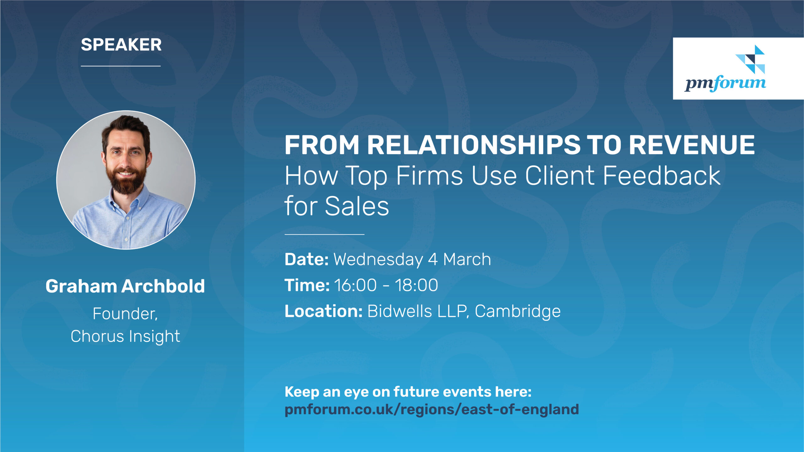 Expect to challenge your assumptions in a practical, lively session and come away with ideas to improve your firm’s market orientation, relationship management and growth strategies.
