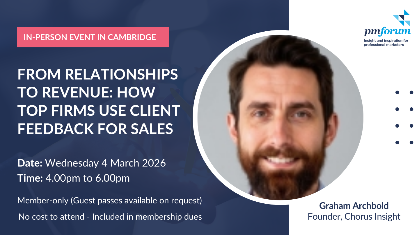 The session is perfect for marketers who want to get closer to the real drivers of client loyalty and growth, as well as play a more strategic role in their firm’s success.