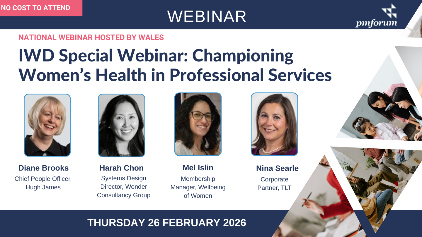 To mark International Women’s Day, join PM Forum Wales’ next webinar to hear from a panel including national charity, Wellbeing of Women on the shocking women’s health stats and what they mean for employers; Wonder Consultancy Group on how they support organisations to make meaningful, systems-level change; and leading law firms TLT and Hugh James on how they are championing women’s health and making practical changes inside their organisations.