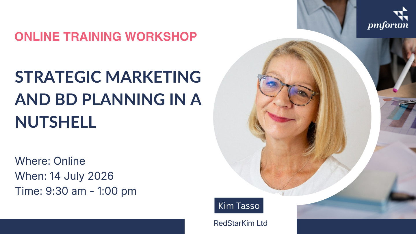 This training course is open solely to member firms of the PM Forum, a worldwide group of over 3,000 marketers in professional services firms.