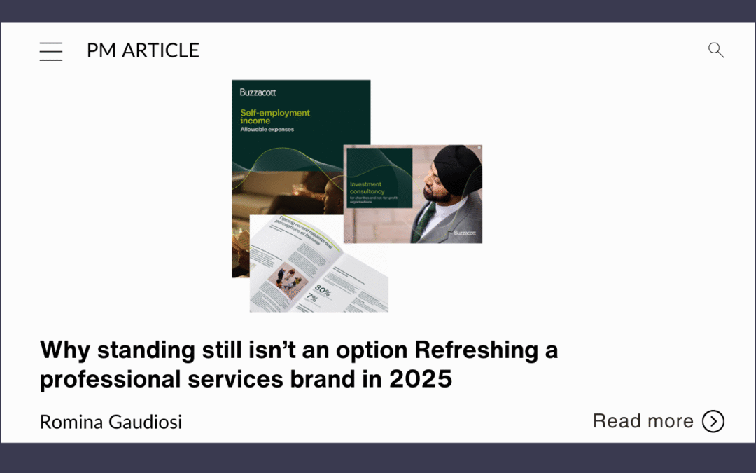 Mid-tier accountancy firms can’t afford to stand still. Romina Gaudiosi shares how Buzzacott refreshed its brand to reflect where it’s heading – and the lessons learned along the way.